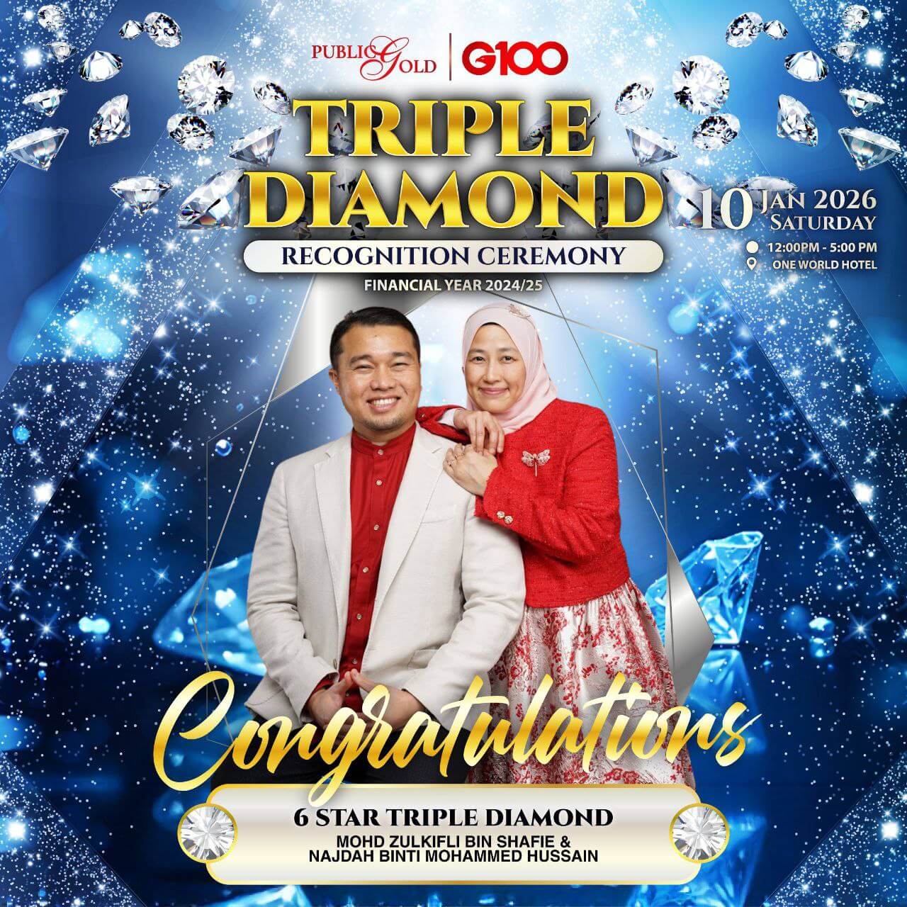 Oleh demikian, dengan memperoleh 18 FAA point pada Financial Year 2022/2023 sememangnya Tuan Mohd Zulkifli Shafie dan Puan Najdah Mohammed Hussain layak dianugerahkan Diamond Leadership Pin.