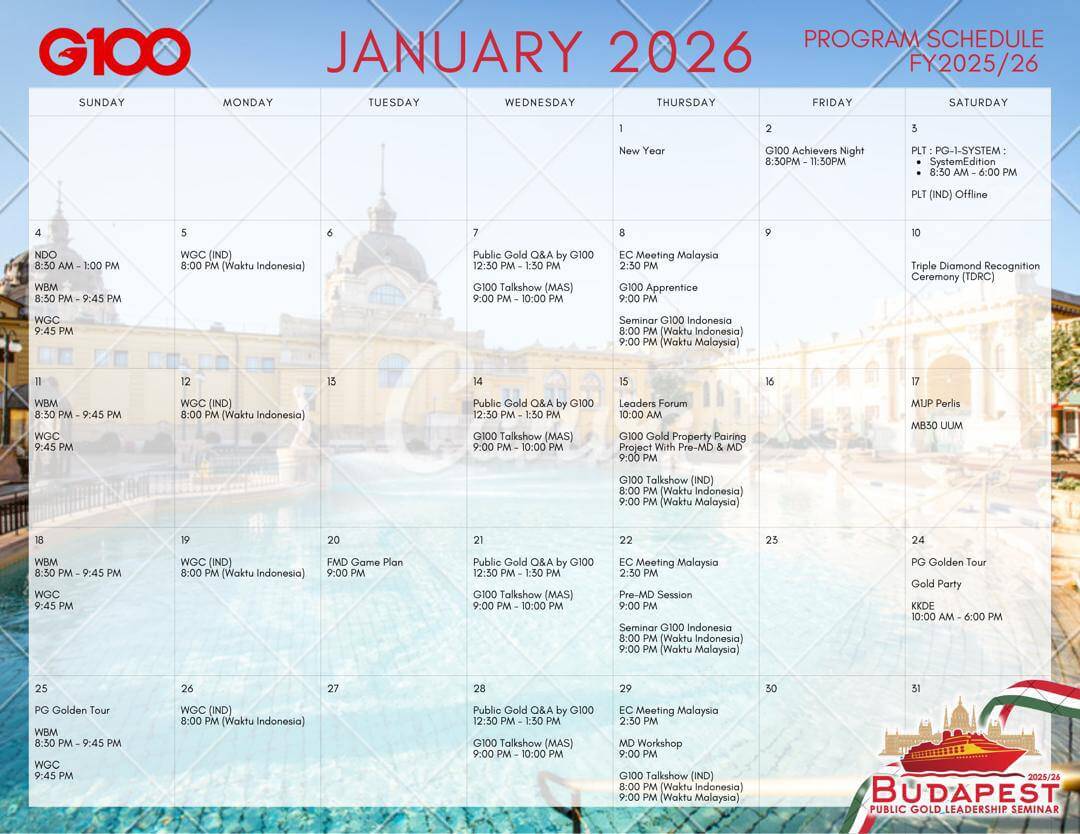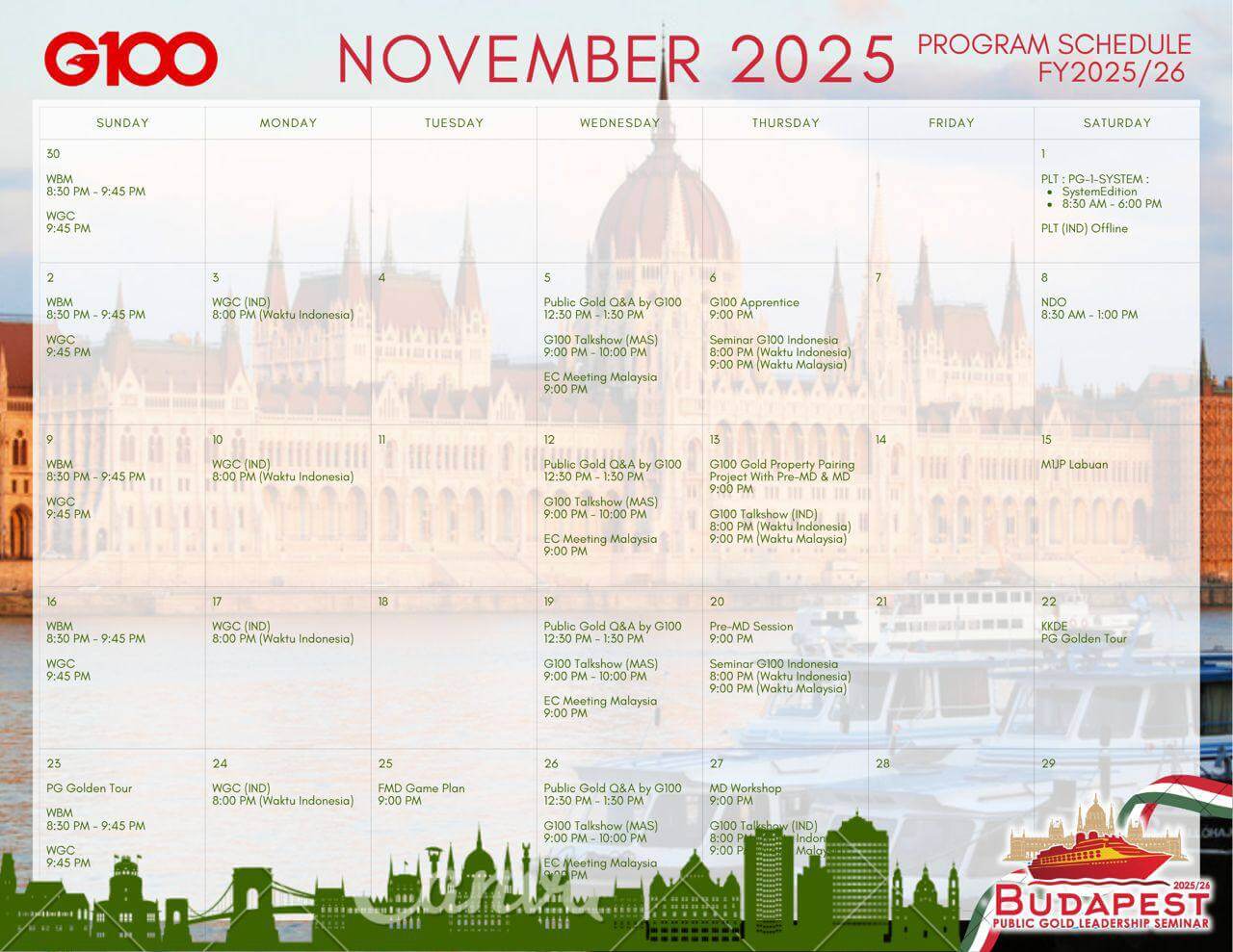 G100 Gold Property Pairing NetworkSetiap Khamis, Minggu KeduaZoom Meeting & FacebookPre-MD, MD, FMD
