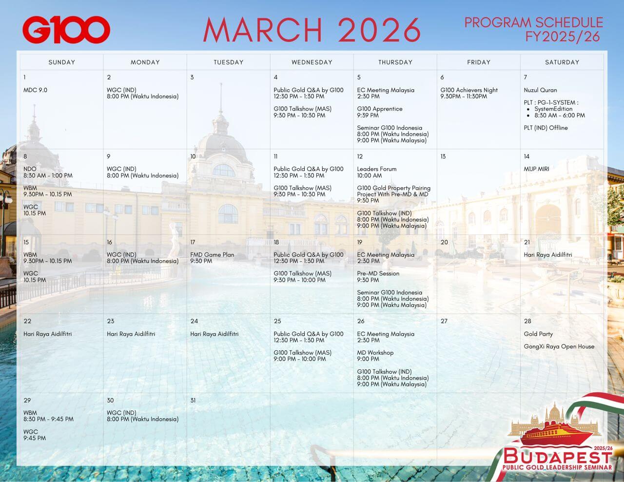 | G100 Gold Property Pairing Network | Setiap Khamis, Minggu Kedua | Zoom Meeting & Facebook | Pre-MD, MD, FMD |