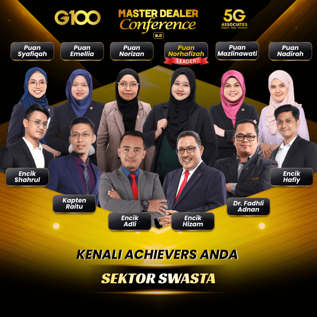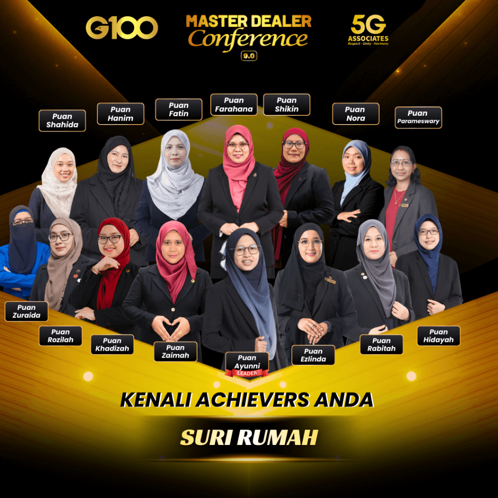 Dengan sistem sokongan dan mentorship yang saya dapat melalui G100, ia memudahkan saya membina empayar bisnes yang kukuh, yang memberikan pendapatan pasif 4 – 5 angka setiap bulan walaupun baru hanya 2 tahun membangunkan bisnes. Luar biasa!