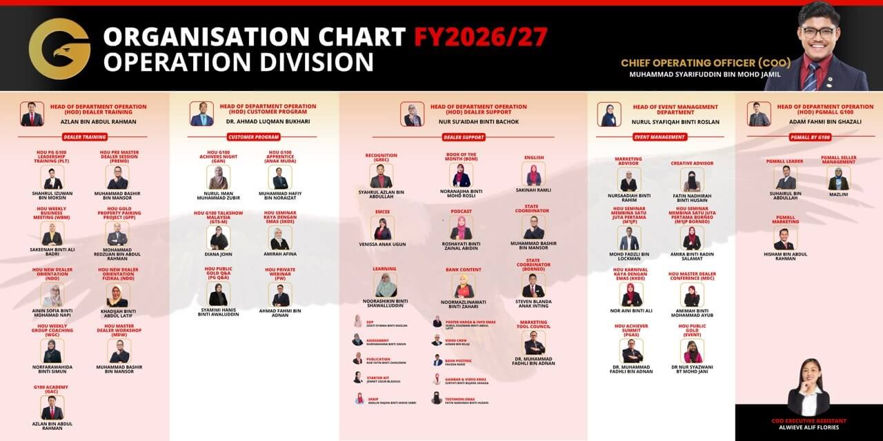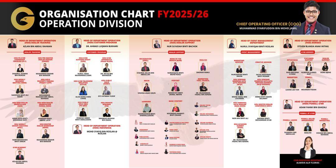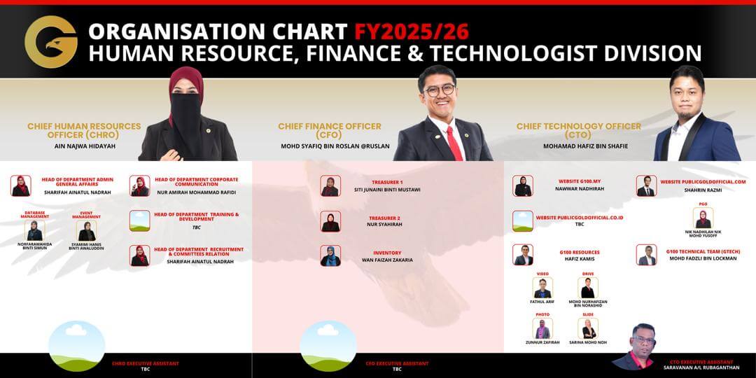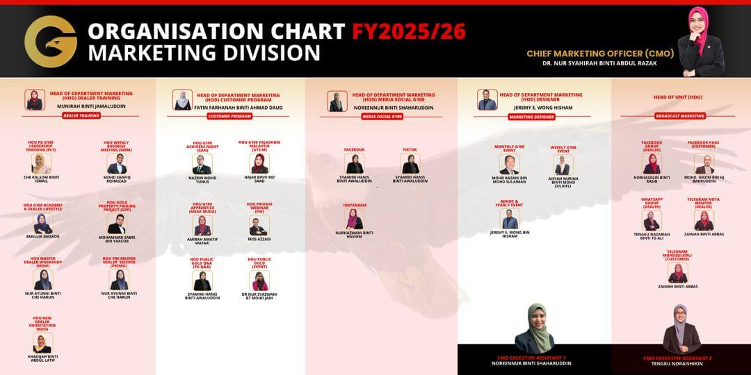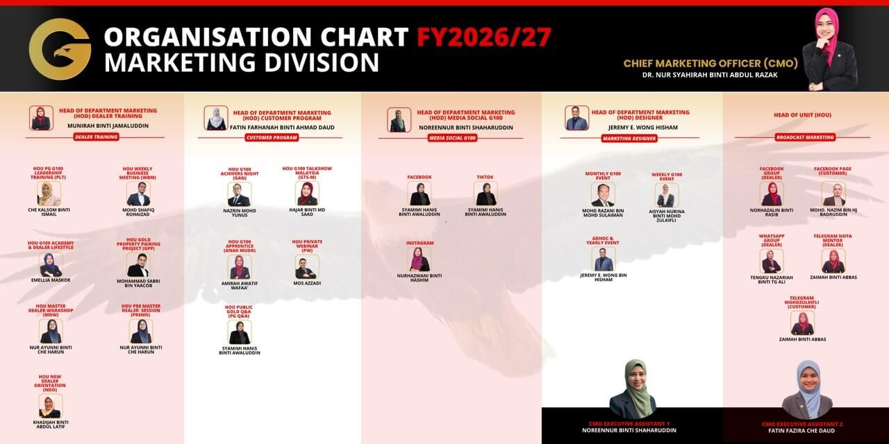 Ditubuhkan secara rasminya pada 24 September 2018. G100 adalah network terbesar dealer Public Gold (PG) yang aktif mendidik masyarakat tentang emas dan kewangan di Malaysia, Singapore, Brunei dan Indonesia.