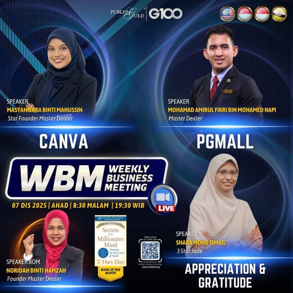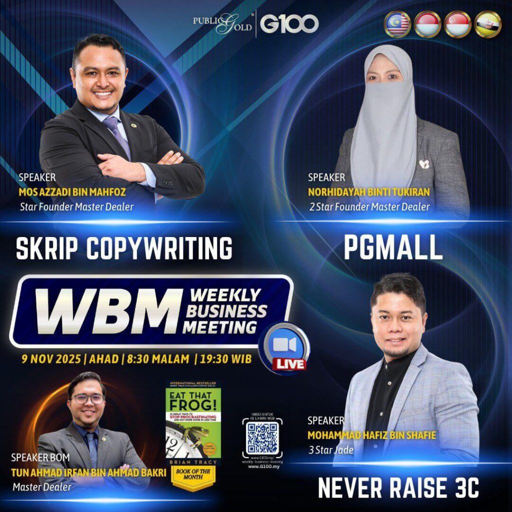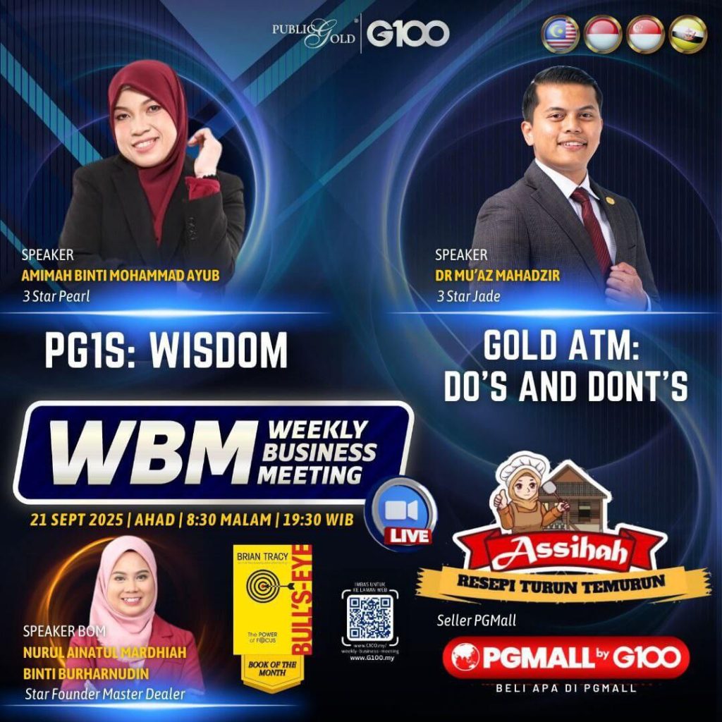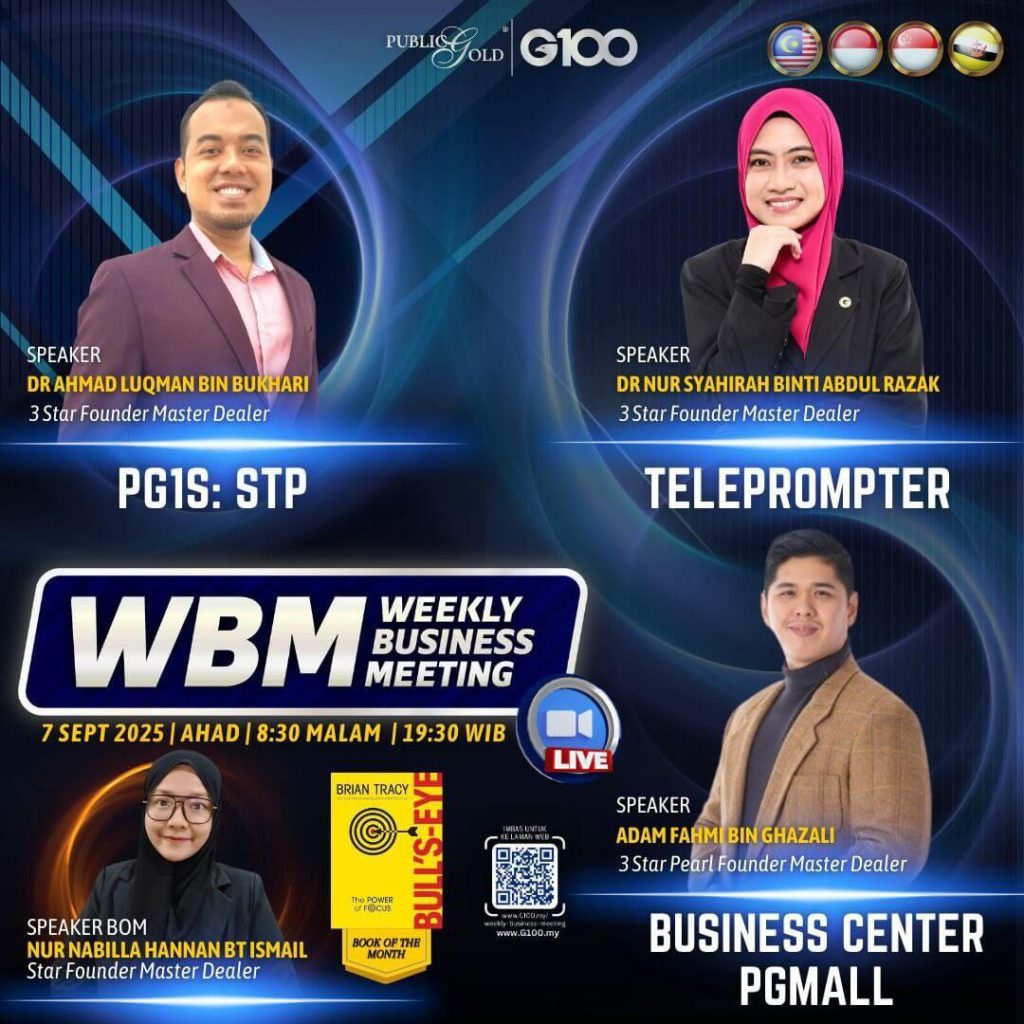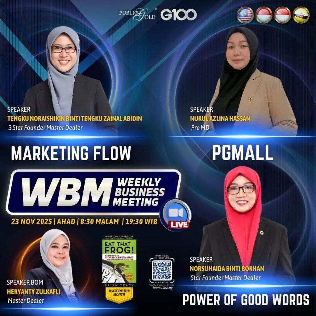 Weekly Business Meeting (WBM) yang diadakan setiap hari Ahad merupakan program latihan mingguan dalam bentuk perkongsian ilmu dan perkongsian update terkini tentang perkembangan bisnes Public Gold.