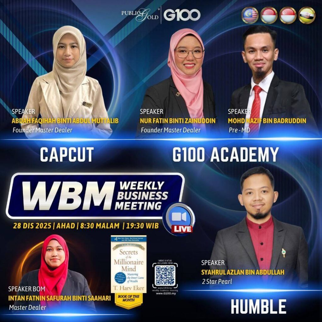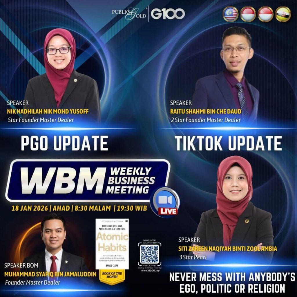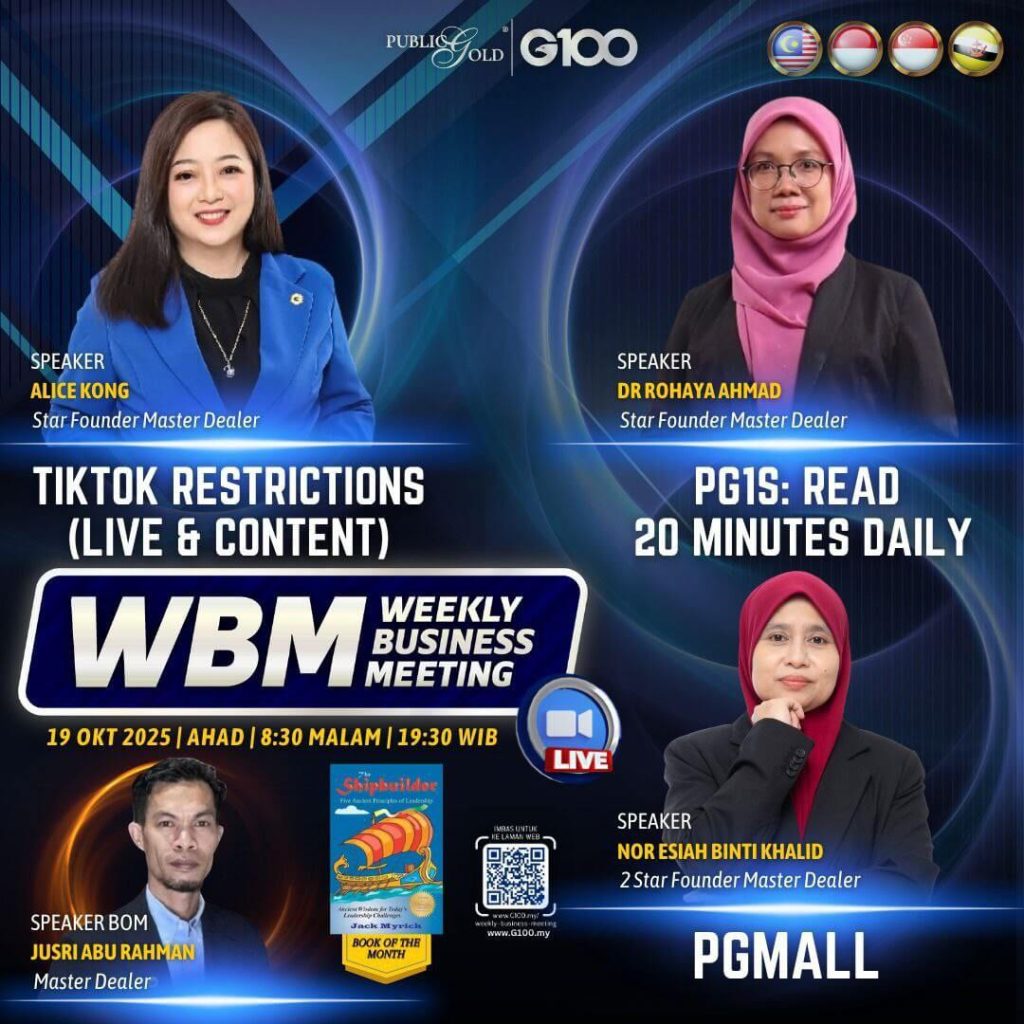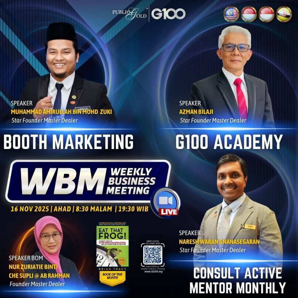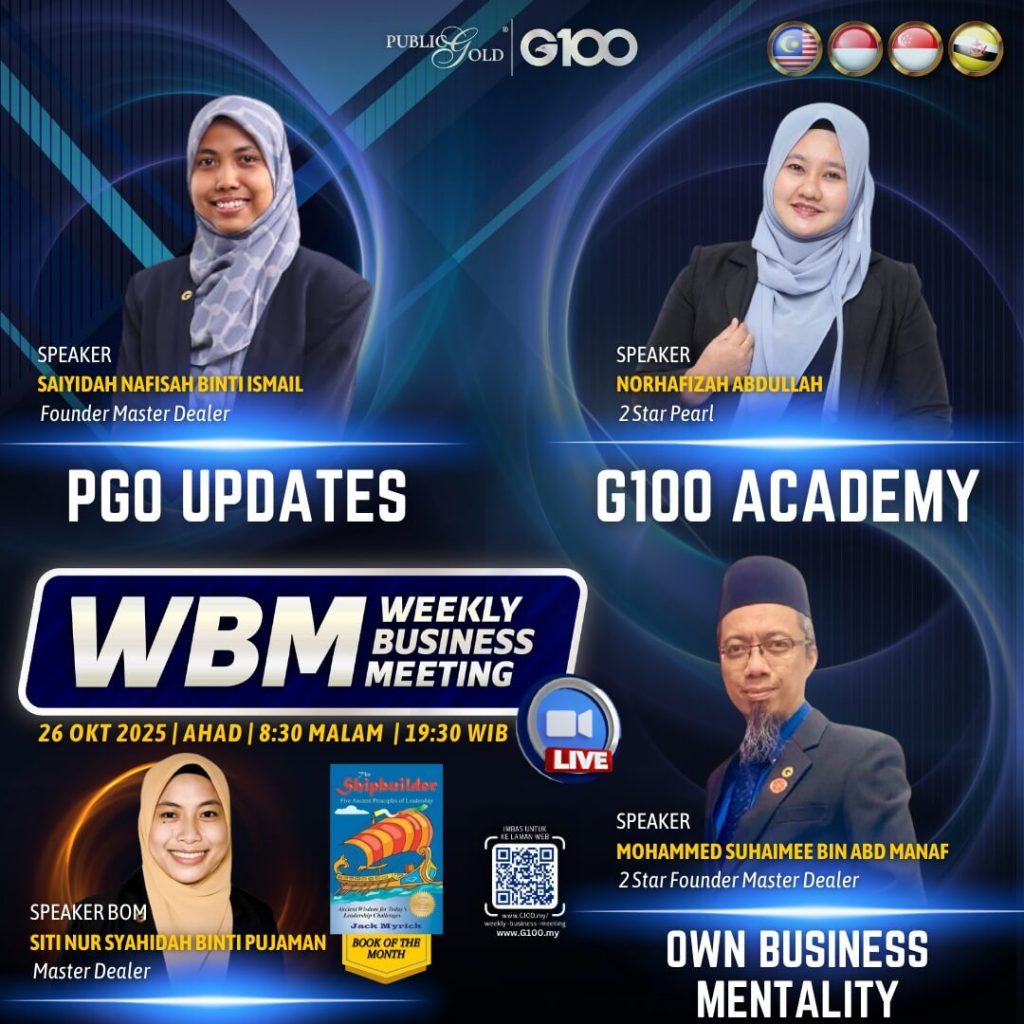 Weekly Business Meeting (WBM) yang diadakan setiap hari Ahad merupakan program latihan mingguan dalam bentuk perkongsian ilmu dan perkongsian update terkini tentang perkembangan bisnes Public Gold.