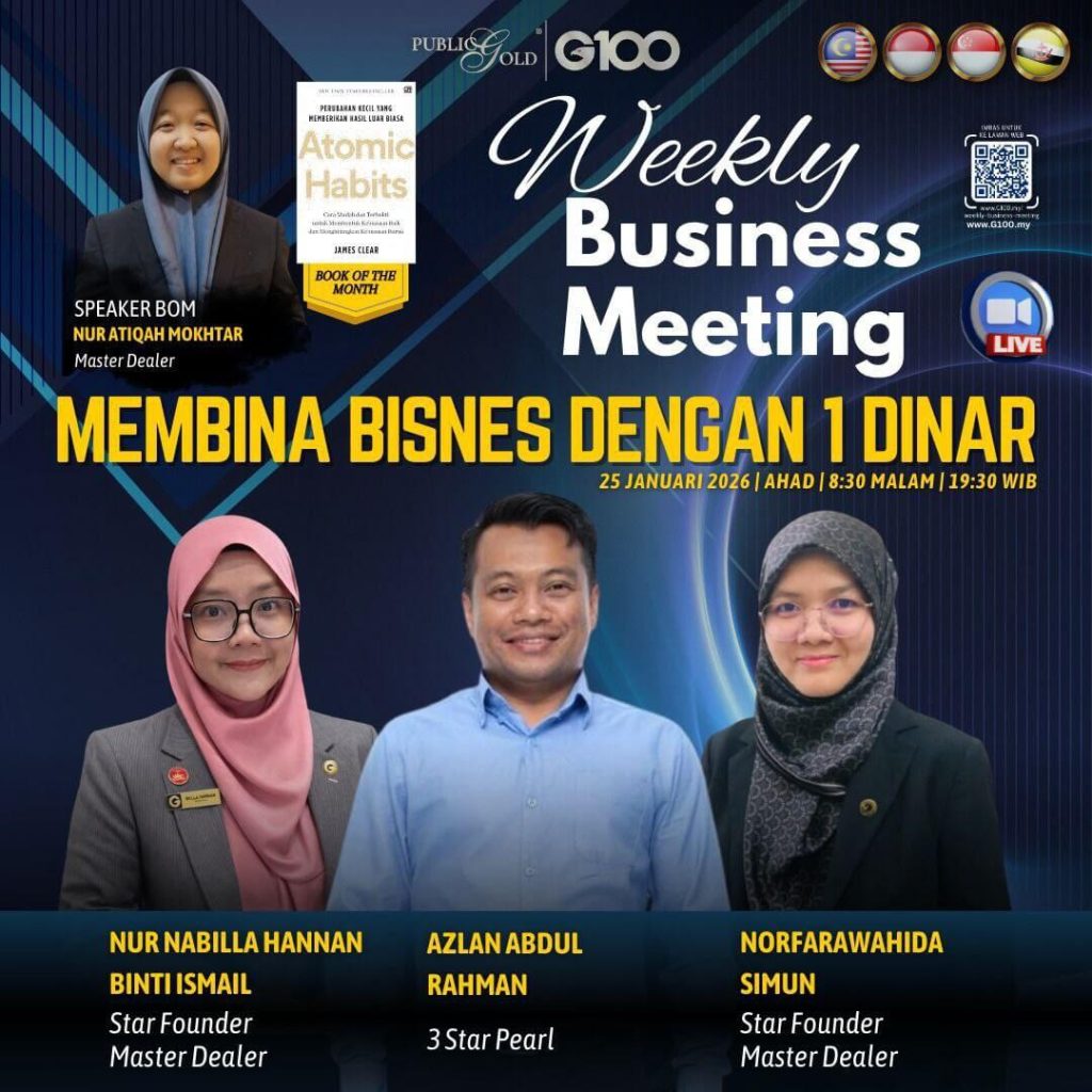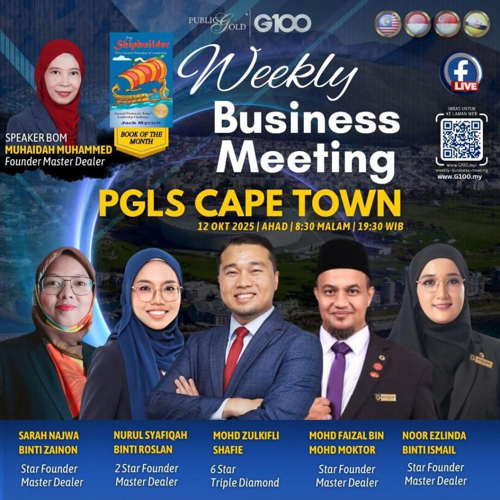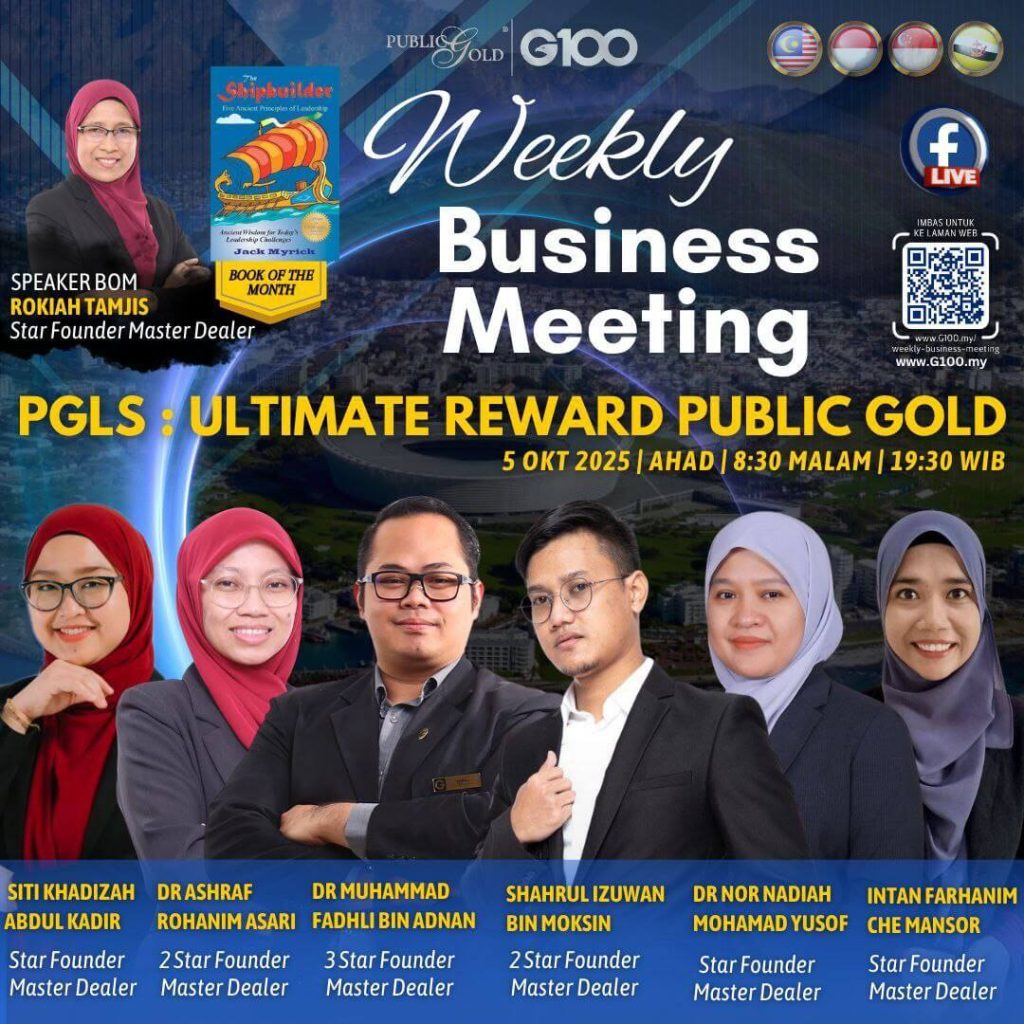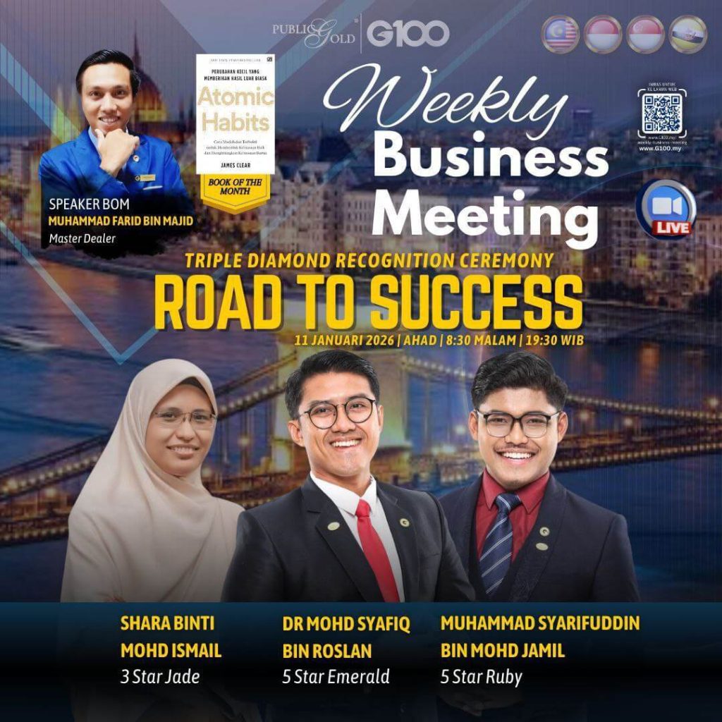 Peluang dapatkan input terkini, associate sesama team G100 yang positif, dan rungkaikan sebarang persoalan tentang bisnes setiap minggu supaya sentiasa bermotivasi.